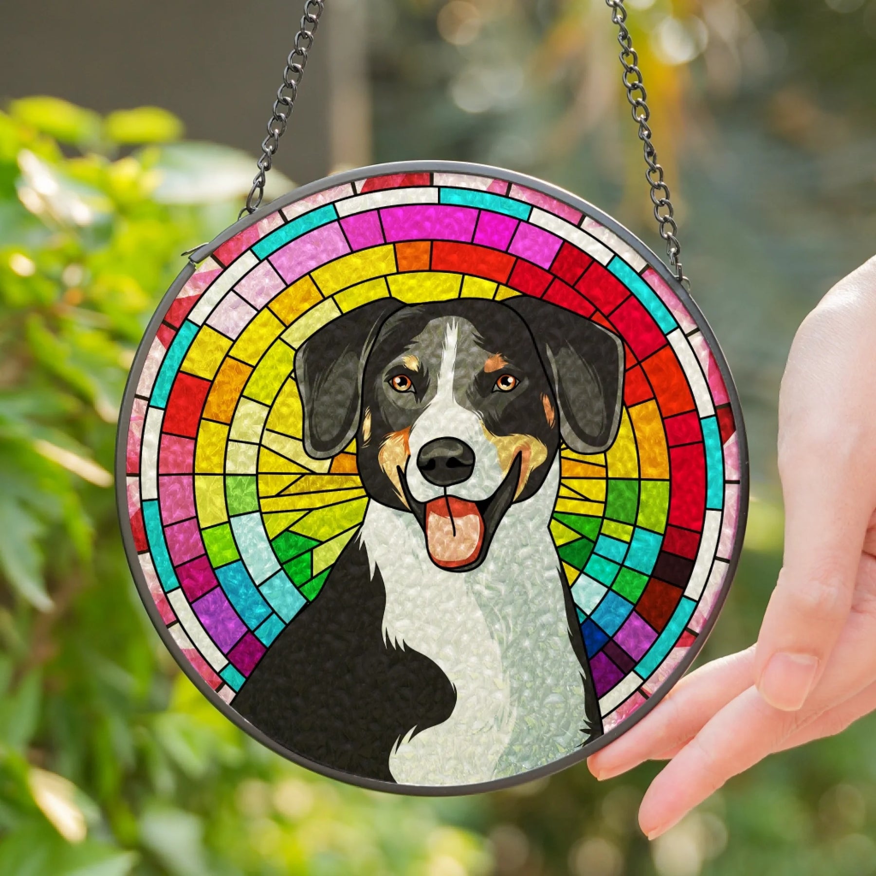 Custom Photo Portrait Dog Cat Family- Memorial Personalized Stained Glass Window Hanging Suncatcher - Sympathy Gift For Pet Owners, Pet Lovers